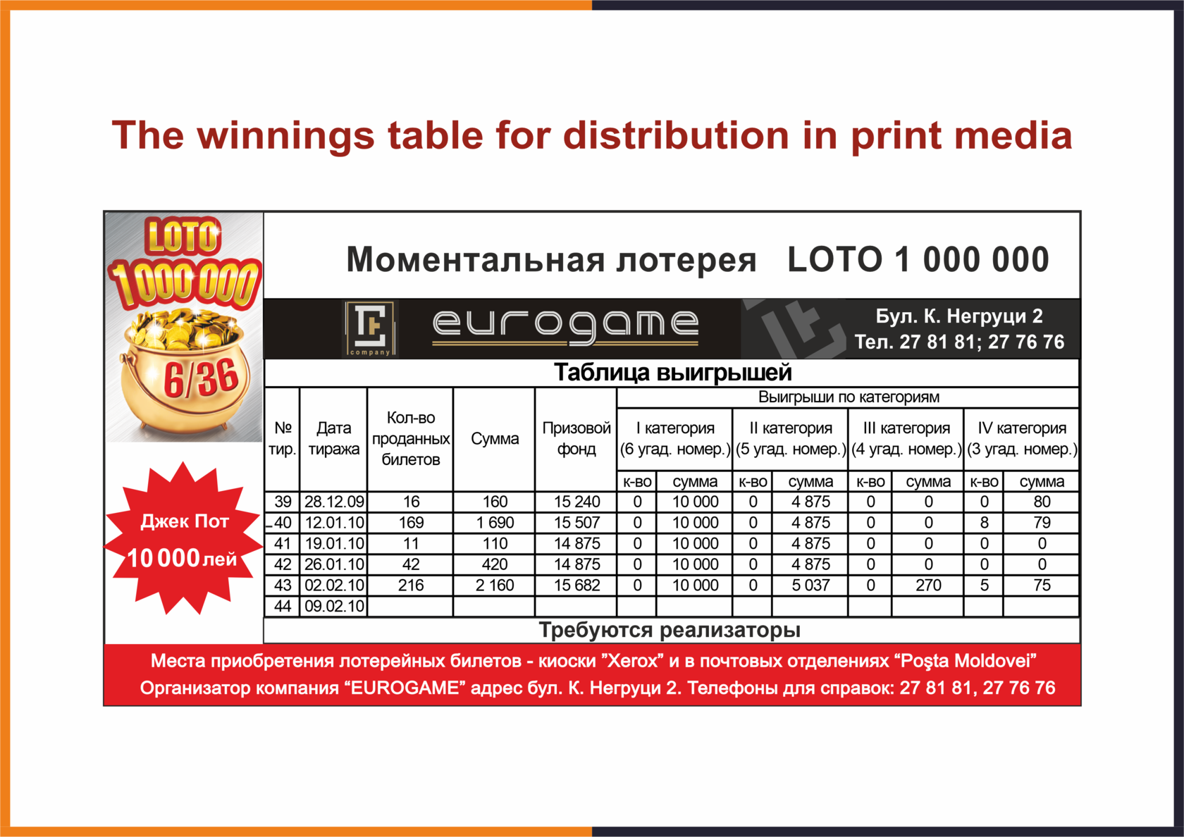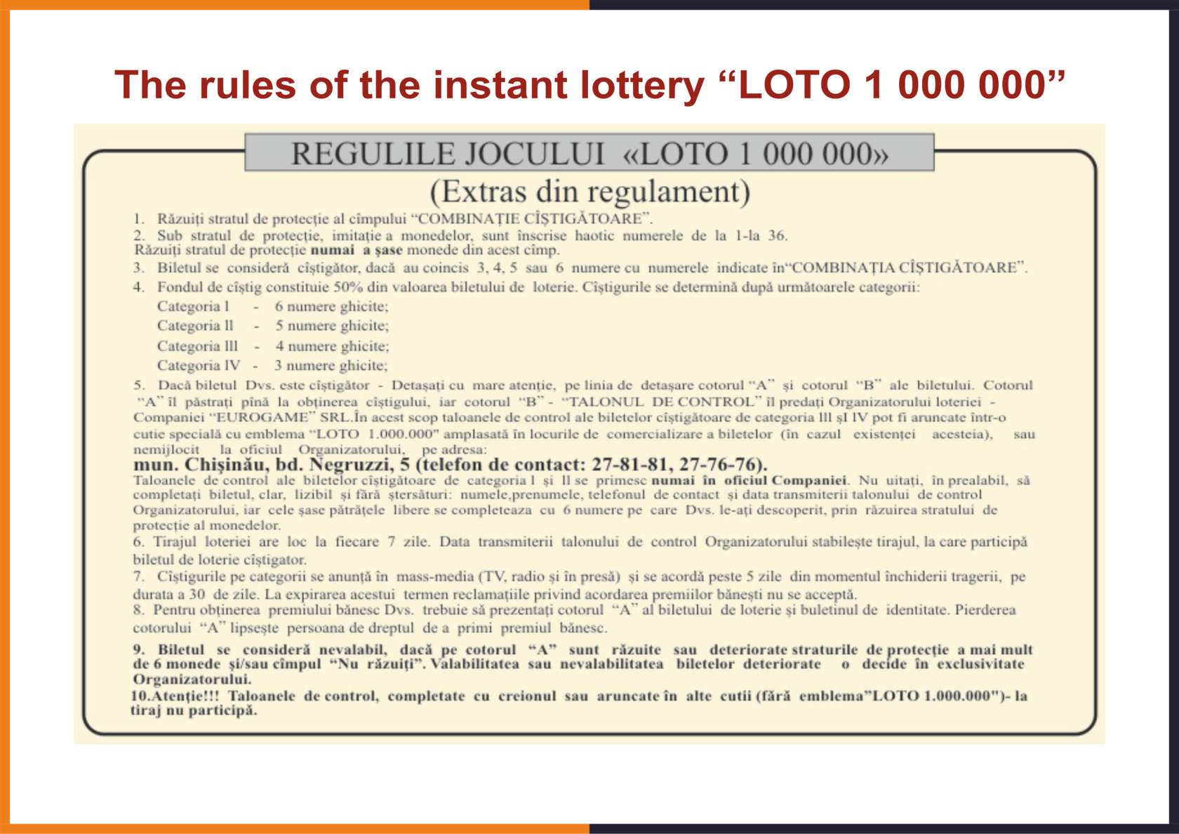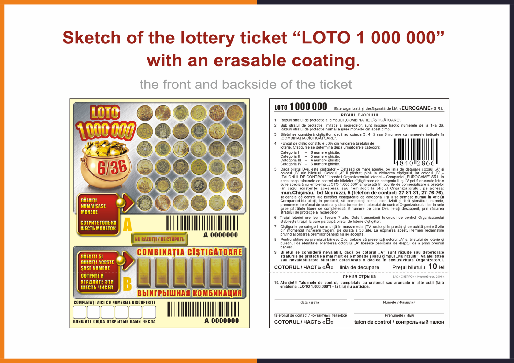 ■ PROJECT: EUROGAME - a Moldovian company, instant lottery organizer. ■ ROLE: ART DIRECTOR & DESIGNER ■ DATE: 2008 ■ RANGE OF WORK: Task 2. Design an instant lottery ticket.
